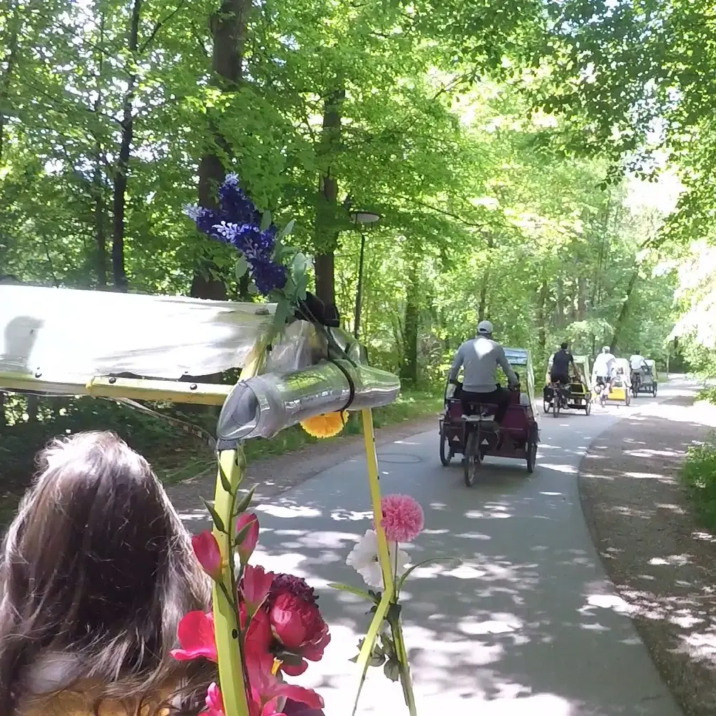 Who voluntarily crams himself inside those overcrowded tour buses today?Why not roll to the most beautiful sights of Munich airy & comfortable inside a rickshaw!
